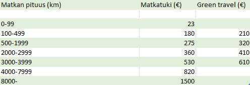 Matkatuki määritellään oppilaitoksen lähtöpaikkakunnan ja kohdekaupungin etäisyyden perusteella. Käytämme matkan etäisyyden laskemiseen välimatkalaskinta (Distance Calculator). Linkki: https://ec.europa.eu/programmes/erasmus-plus/resources/distance-calculator_en